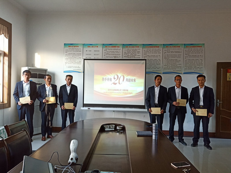 在這一特殊的日子里,公司在會議室召開二十周年總結表彰大會,回首過去、展望未來并發放愛崗敬業獎!會后所有員工合影留念。